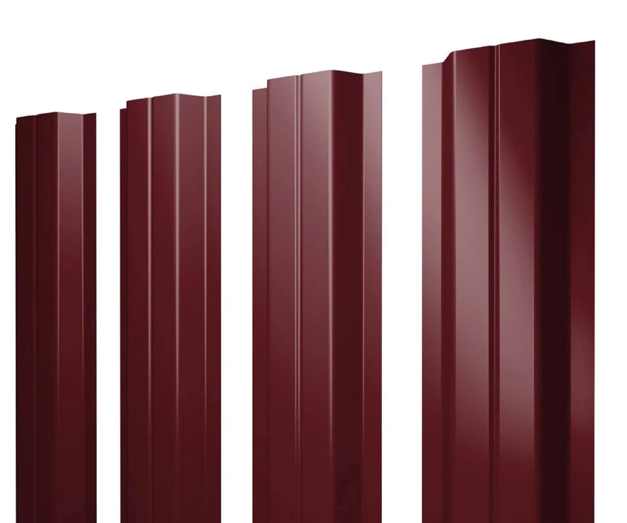 Надежность. Секции евроштакетника п-образного 0,4x110 мм вишневого ral 3005 1м можно размещать на расстоянии от 2 до 4 см друг от друга при одностороннем монтаже. Таким образом, владелец частного дома или предприятия может быть уверен в конфиденциальности.