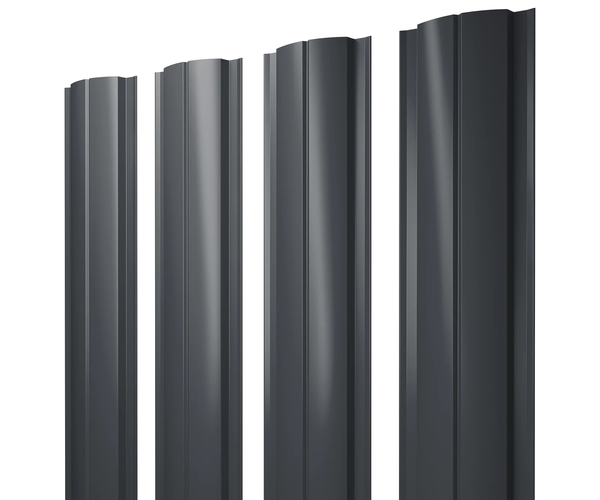 Пользователь также может остановить свой выбор на двустороннем варианте евроштакетника полукруглого 0,35x110 мм серого ral 7024 1м. В этом случае вместо тыльного покрытия можно подобрать подходящий цвет краски.